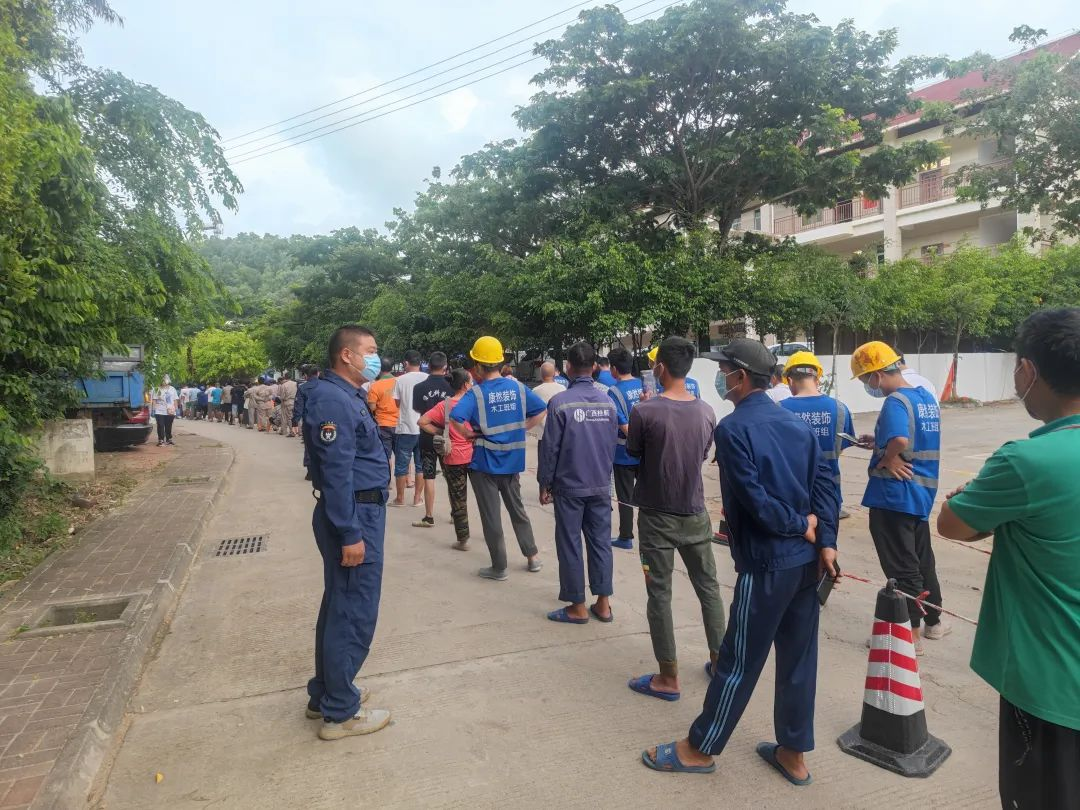 8月2日13:00,救援中心党支部组织党员和队员在吉阳区南丁村协助核酸检测。