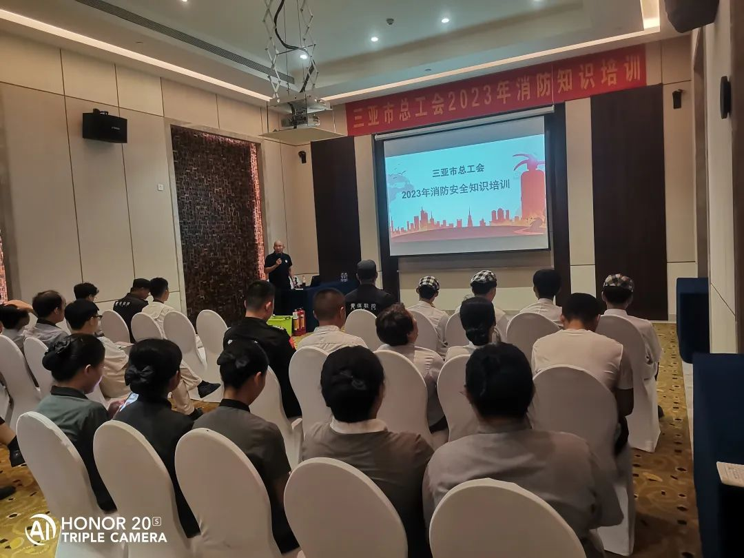 受三亚市总工会委托,三亚市中安应急技术研究院为全市20家企事业单位职工开展消防安全知识培训,在市总工会精心指导下,完满完成了20场的培训。9月7日,三亚市中安应急技术研究院为亚龙湾希尔顿酒店员工开展消防知识培训。本次培训为三亚市总工会2023年消防安全知识培训最后一期。