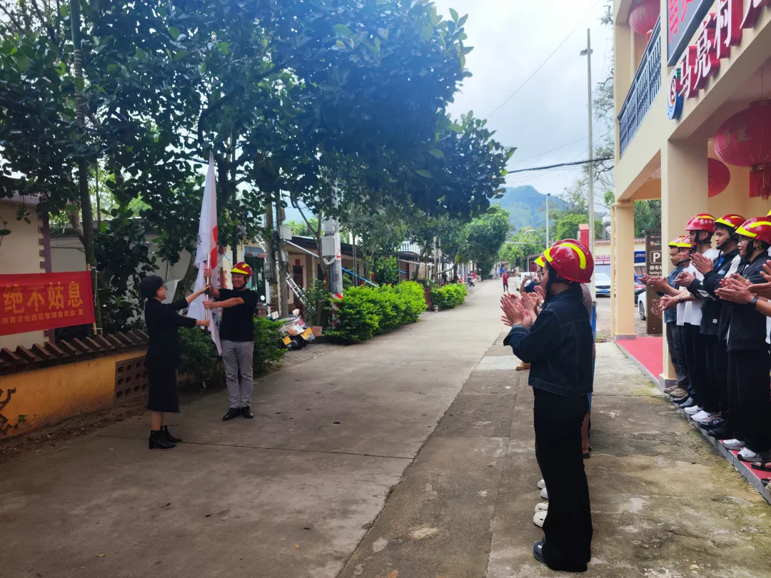 培训结束后举行了授旗仪式。由三亚市红十字会党组书记、常务副会长张华菊向育才生态区马亮村红十字应急响应队授予队旗,至此,育才生态区第三支红十字应急响应队正式组建成立。