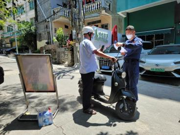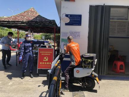 吉阳区委常委、武装部部长闫强在党员先锋岗了解分析防控具体工作安排