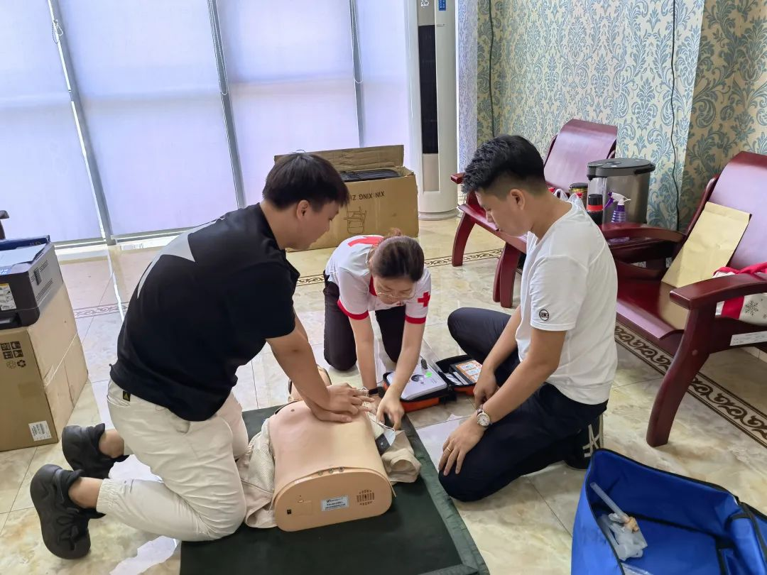 培训老师通过真实案例、解答互动等多种方式,向职工普及了心肺复苏(CPR)的操作流程和自动体外除颤仪(AED)的使用知识,并利用人体模型进行了模拟实训,加深职工们对心肺复苏技能的理解和掌握。