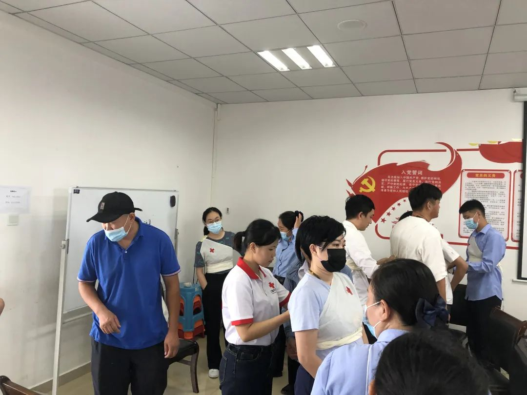 培训现场采用线上理论学习、操作演示、分组练习等多种形式,讲练结合。授课老师通过现场演示向学员们强调应急救护“黄金四分钟”的重要性,逐一讲解演示了胸外按压、AED使用、止血、包扎、骨折固定等,并手把手教学员进行心肺复苏、绷带、三角巾包扎等自救互救技巧。