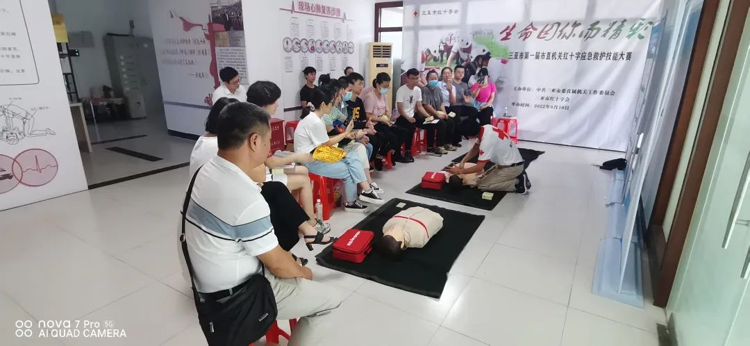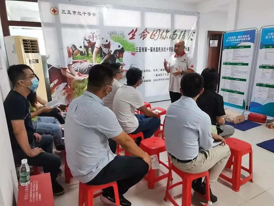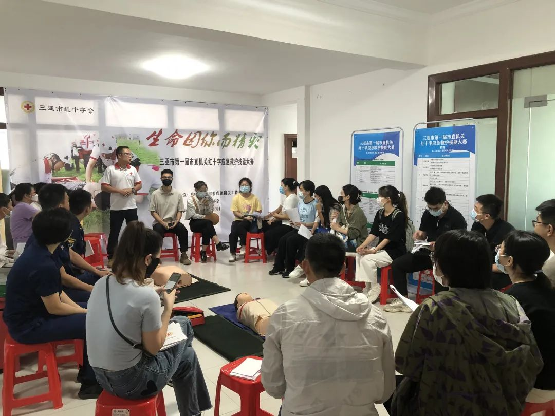 7月27日,三亚市第一届市直机关红十字应急救护技能大赛第一组